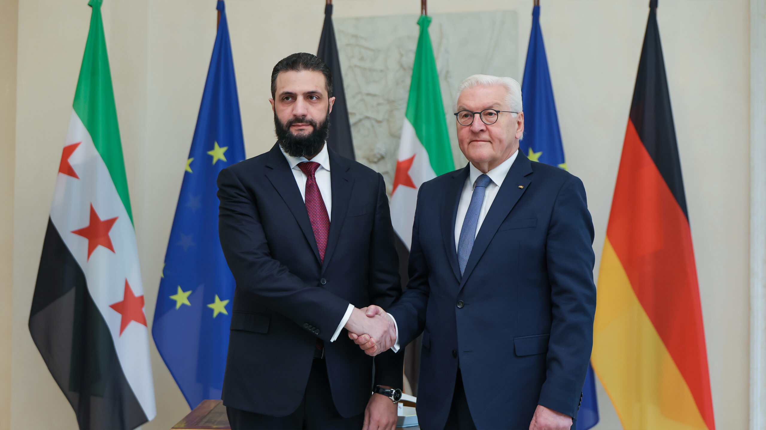وبحسب موقع DW يجري الشرع لقاءات مع مسؤولين ألمان، في أول زيارة تقوده إلى ألمانيا، لبحث حرب إيران وإعادة إعمار بلاده ومساعي برلين لإعادة اللاجئين السوريين.