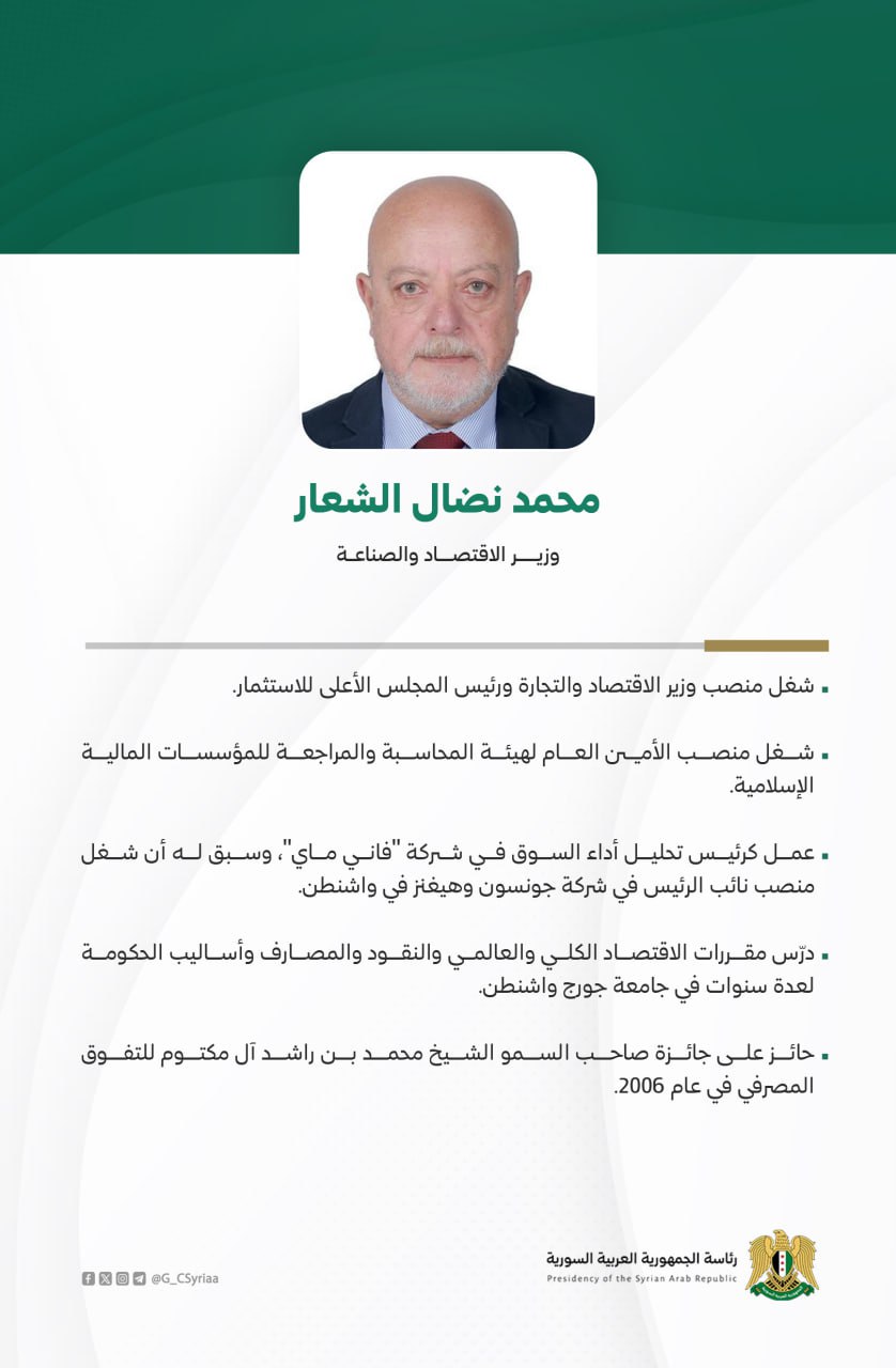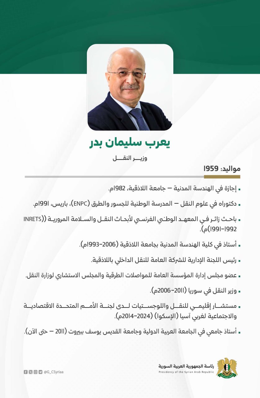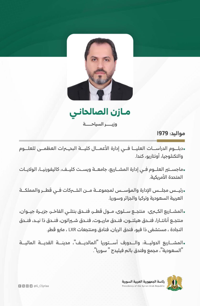 السير الذاتية للوزراء في التشكيلة الحكومية السورية الجديدة برئاسة أحمد الشرع كما نشرتها وكالة “سانا” الحكومية