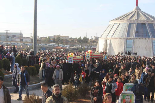 ودّع اليوم الآلاف من أهالي إقليم الفرات جثماني الشهيدين إسماعيل أحمد الاسم الحركي موردم جيا، والشهيد محمود كنو الاسم الحركي جومرد كوباني، فيما كشف مجلس عوائل الشهداء عن سجل المقاتل في قوات الدفاع الذاتي عبدالرحمن حج علي الذي استشهد ضمن مقاومة الكرامة.