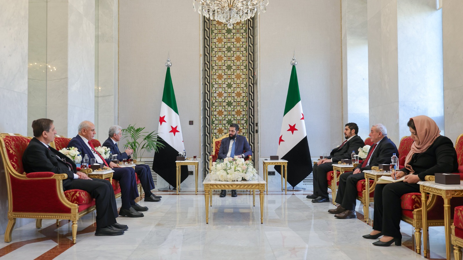 التقى رئيس السلطة المؤقتة في سوريا أحمد الشرع، اليوم، في قصر الشعب بدمشق، وفدًا من المجلس الوطني الكردي.