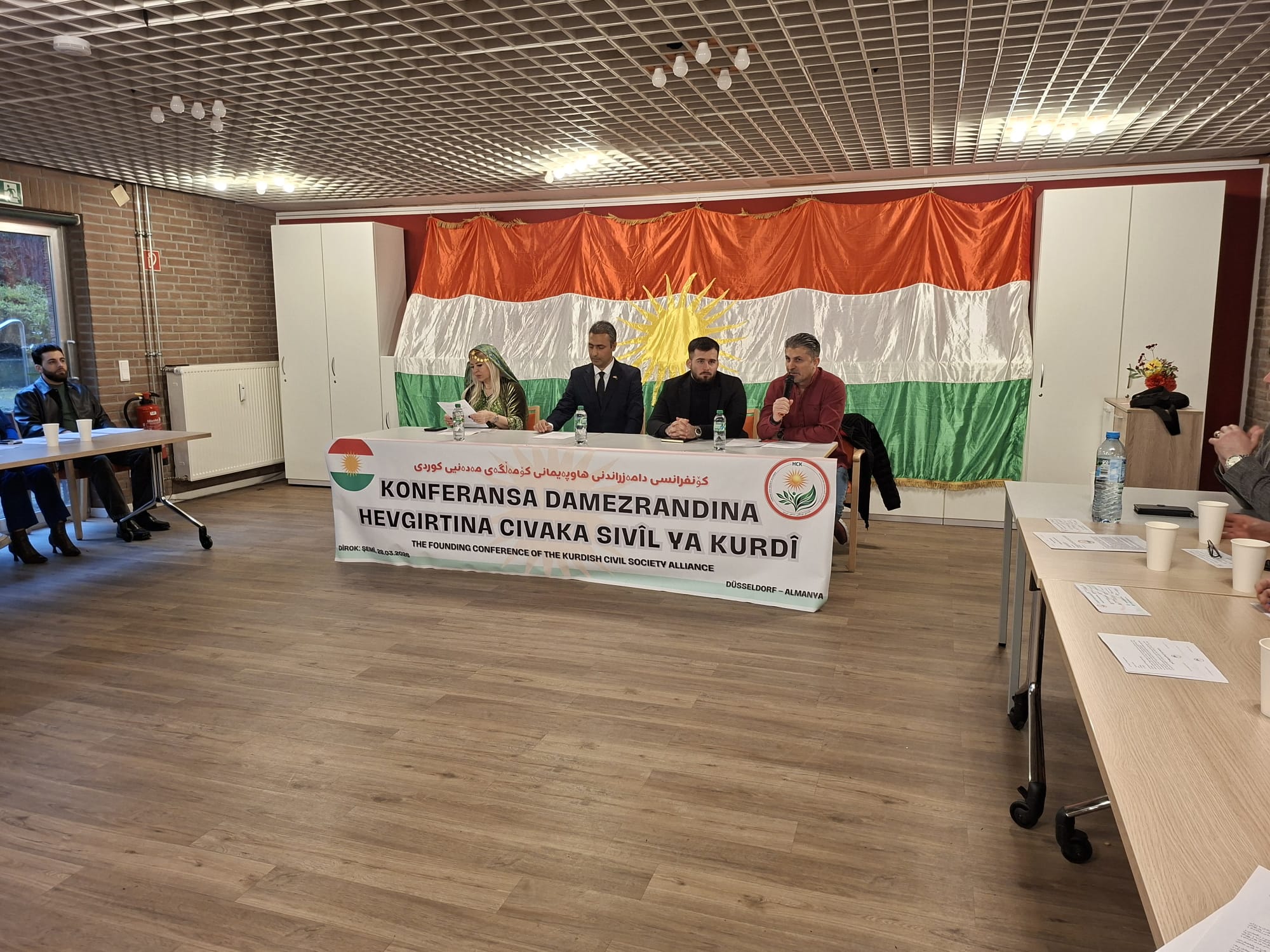 Destpêka konferansê bi rawestana yek deqeyê ji bo rûhên şehîdên Kurd û Kurdistanê hat kirin, paşê jî stranê neteweyî ya Kurdî “Ey Reqîb” hat guhdarîkirin. Ev demek bû ku dilsoziya ji fedakariyên gelê Kurd û têkoşîna wê ya dîrokî ji bo azadî û rûmetê nîşan da. Di rûniştina vekirinê de jî axaftin hatin kirin ku girîngiya xebata sivîl û rola wê di rêxistina hêzên civakî û pêşxistina çalakiyên civakî de destnîşan kirin. Her wiha girîngiya hevkariyê di navbera saziyên Kurdî yên li welatên derveyî de di çarçoveyek sazûmanî ya rêkûpêk de hat teqez kirin.
