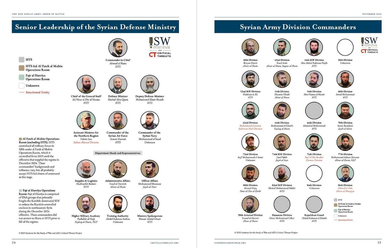 دراسة بعنوان ( The New Syrian Army – Order of Battle ) صادرة عن مشروع التهديدات الحرجة CTP التابع لمعهد دراسات الحرب ISW، والمرتبط بدوائر القرار في واشنطن.