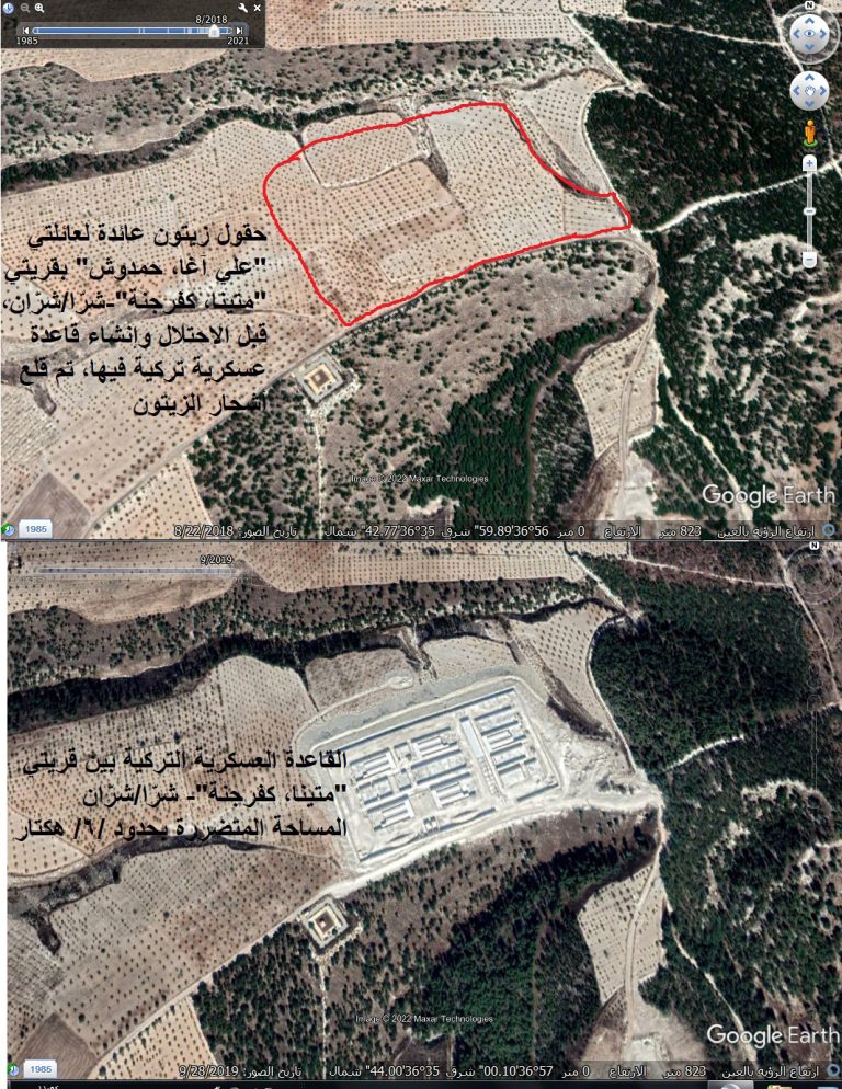 – ميليشيات “فرقة الحمزات” لا تسمح لمواطني قرية “ماراته” قطاف زيتون حقولهم، إلا بموجب موافقة ممنوحة من البلدية لصاحب الملك شخصياً مع غرامة ليرة تركية واحدة عن كلّ شجرة، عدا الإتاوة التي ستفرض على انتاجها؛ بالإضافة إلى حصر أملاك الغائبين وفرض إتاوة تصل إلى 50% من انتاجها، عدا تلك الحقول المستولى عليها سابقاً.