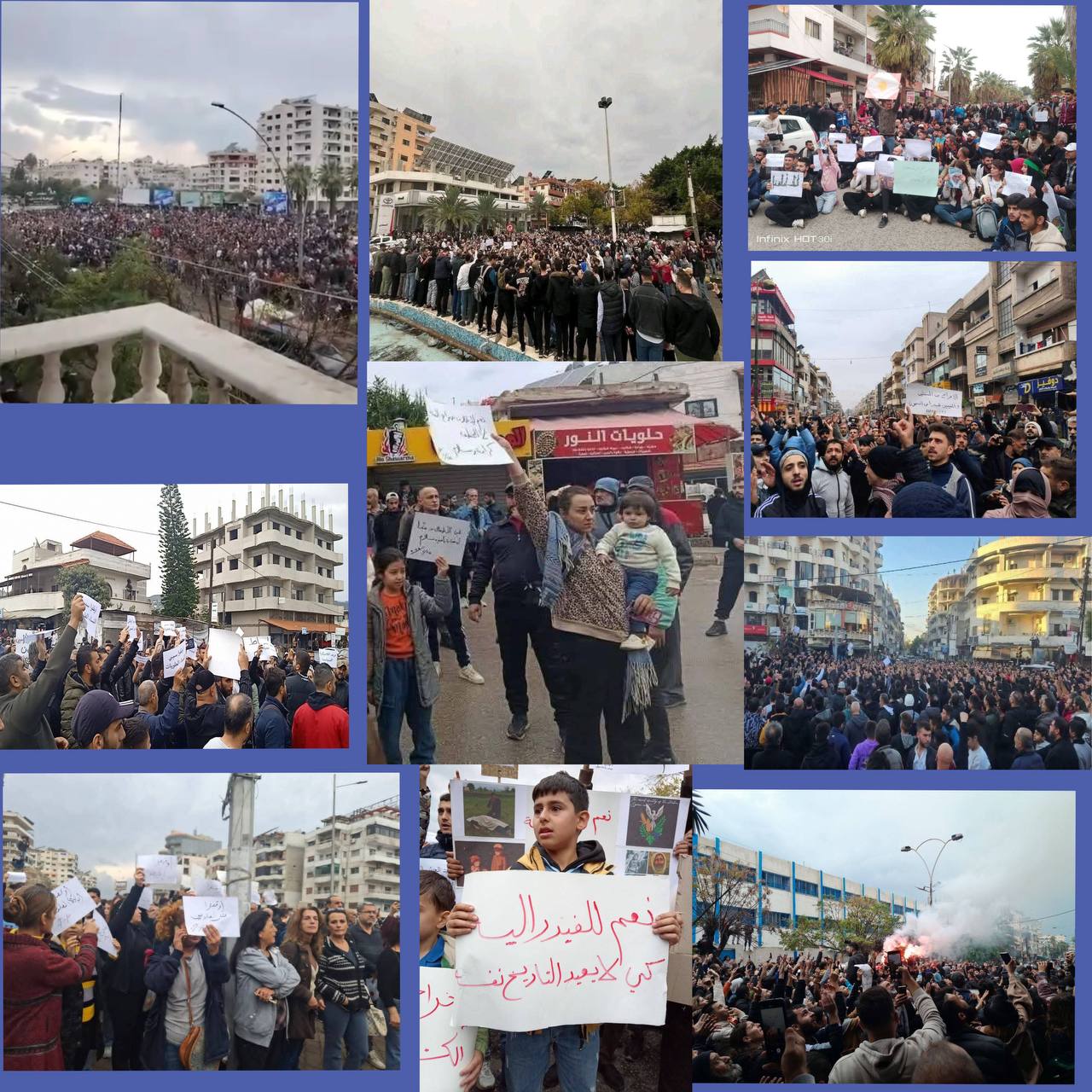 🔹خرج آلاف العلويين في مدن وقرى وسط وغرب سوريا يوم أمس 25 تشرين الثاني/نوفمبر، مظاهرات في 42 موقع، طالبت بالنظام الفيدرالي واللامركزية السياسية، ووقف القتل، والخطف والاعتقال والإفراج عن المعتقلين بشكل قسري، وعن تمثيل الشيخ غزال غزال رئيس المجلس العلوي لهم.
