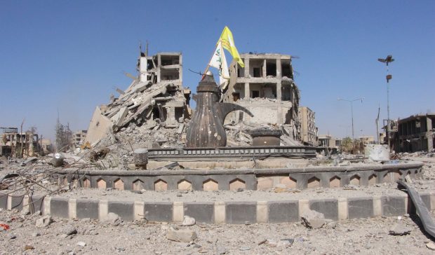 مازال الدوار يُذكِّر أهالي الرقة بممارسات مرتزقة داعش، رغم تغير المعالم من حوله إثر الدمار الذي حل بالمنطقة المحيطة به نتيجة تفجير مرتزقة داعش أكثر من 11 عربة مفخخة بالقرب منه في محاولاتهم التصدي لتقدم قوات سوريا الديمقراطية.