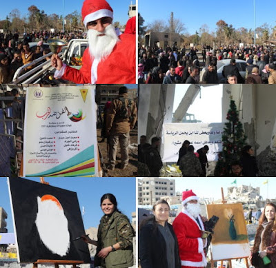 ودعت قوات سوريا الديموقراطية السكان للمشاركة في تلك الاحتفالات الرمزية التي غاب عنها الكهنة والمسيحيين من ابناء الرقة باستثناء مقاتلين من المجلس العسكري السرياني.