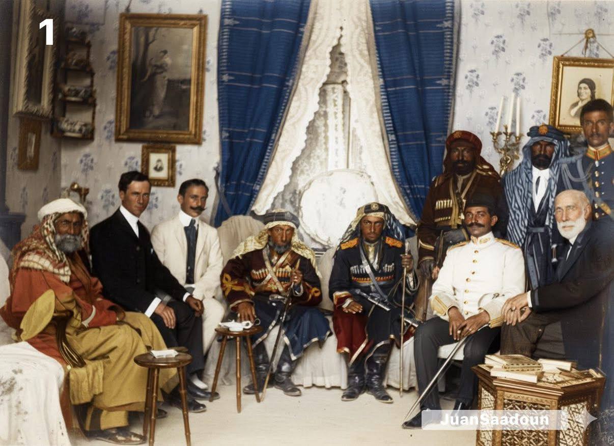 2- ابراهيم باشا الملي مع زعماء ووجهاء وتجدون في الصورة جمال باشا السفاح أيضاً الذي غدر بابراهيم باشا لاحقاً بعد نفي السلطان عبدالحميد الثاني.