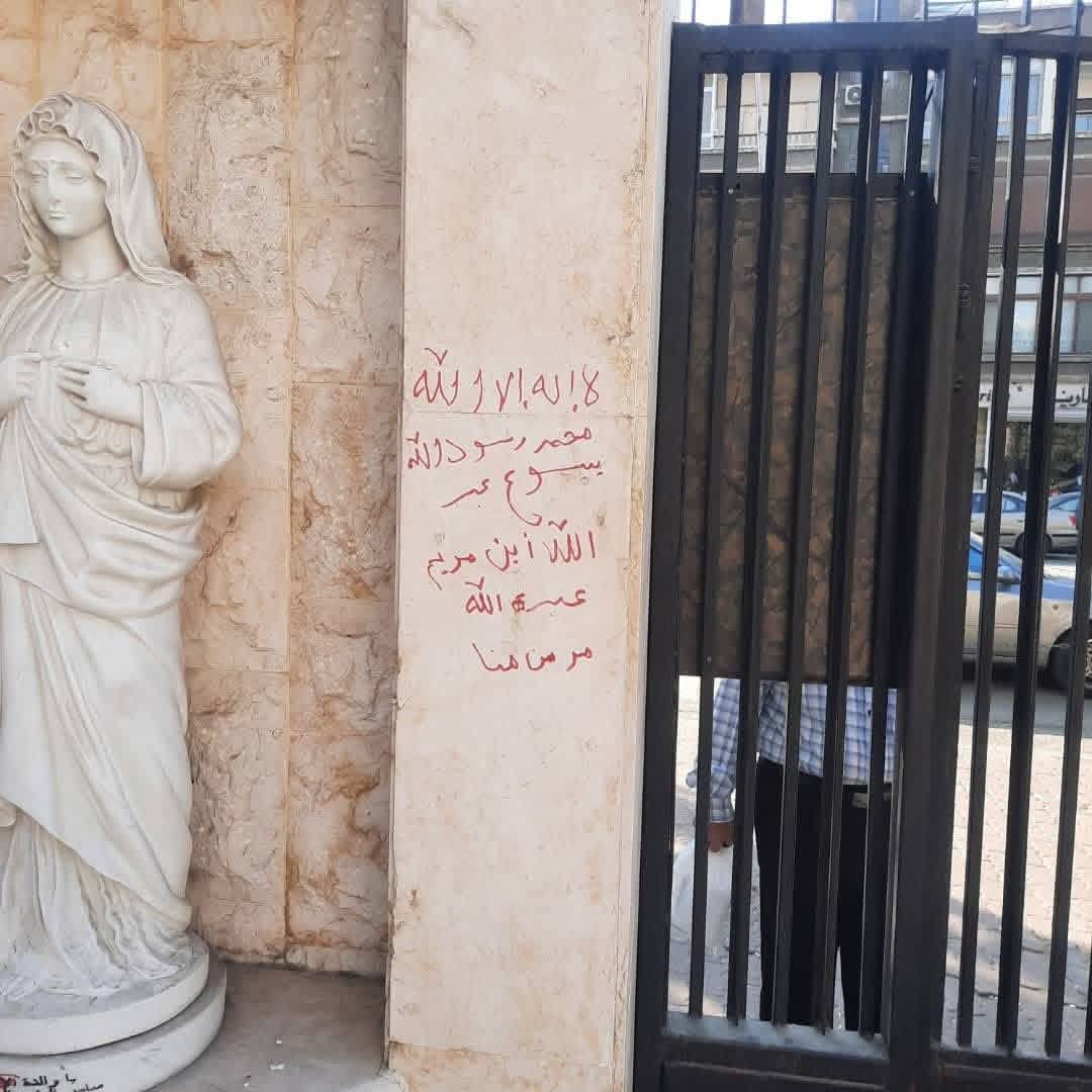 أظهرت صورة متداولة على مواقع التواصل الاجتماعي بتاريخ 7 نوفمبر 2025 عبارات مدونة على بوابة مقام ديني للمسيحيين تحرض على