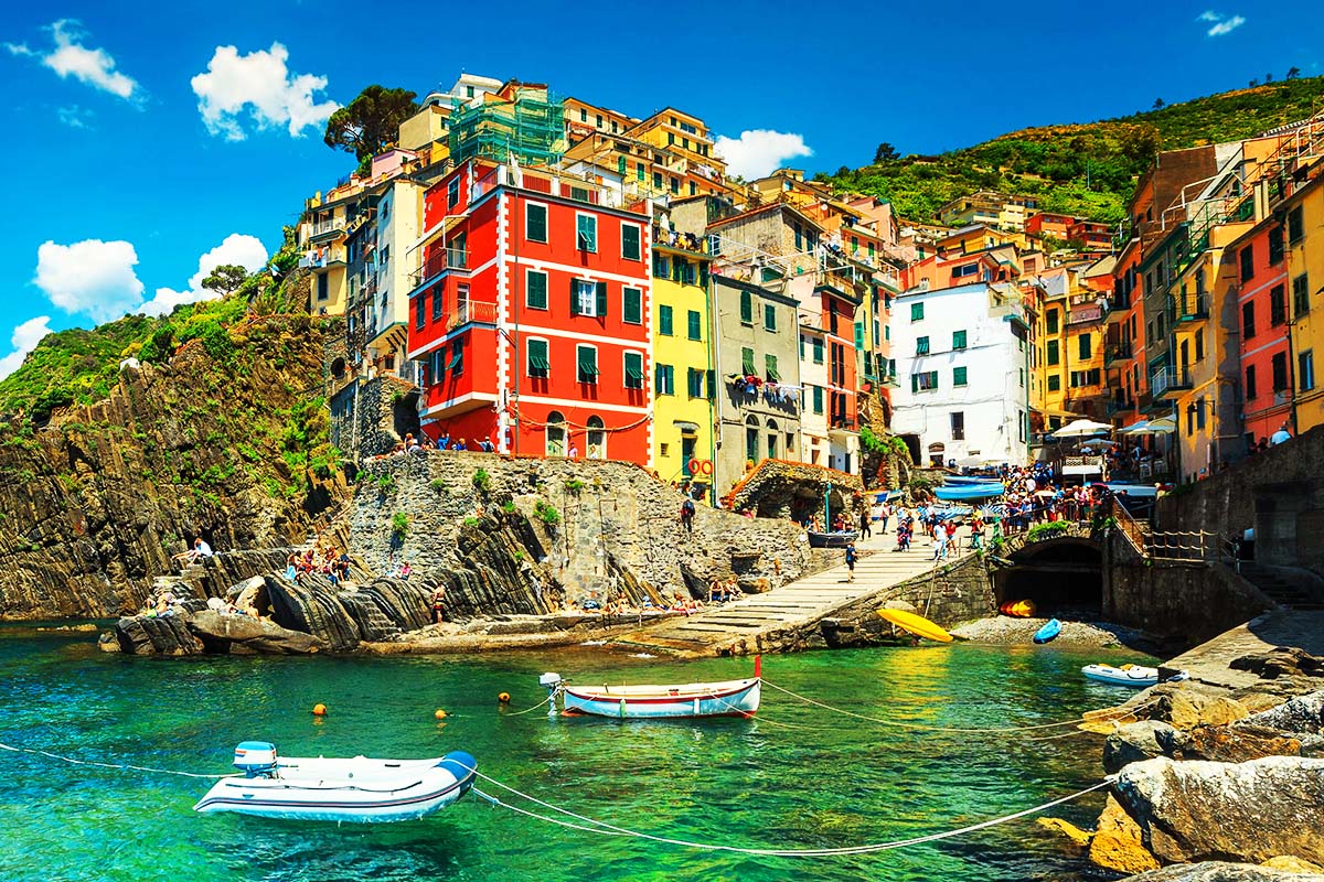 إيطاليا، تلك الدولة التي تبدو وكأنها لوحة حيّة للفن والعمارة، حيث تتعانق الجبال مع البحر، والبيوت الملونة تتكدس فوق بعضها على منحدرات صخرية لا تعرف الانحدار إلا كزخرفة طبيعية. هنا، في أزقة المدن والقرى، يُروى التاريخ بحجارة المباني وطلاء الجدران، وتنساب الحياة اليومية في الأسواق والمقاهي كما تنساب ألوان الزيت على لوحة فنية. المنازل، بألوانها الصارخة ـ الأصفر الليموني، الأزرق السماوي، الوردي الفاتح، البرتقالي الدافئ ـ تبدو وكأنها صرخة فرح على حافة البحر، وصيحة حب من الحجر إلى الشمس. النوافذ الصغيرة تتكئ على بعضها، والشرفات الضيقة تتدلى منها زهور الياسمين ، وكأن كل بيت يريد أن يروي قصته الخاصة لكل مارٍّ أو زائر. في هذا المكان يصبح الجمال جزءًا من الحياة اليومية، والطعام ليس مجرد وجبة، بل تجربة حسية كاملة: من رائحة الخبز الطازج الذي يملأ الشوارع إلى صلصات البيستو والبيتزا الطازجة، مرورًا بالأسماك المشوية التي يقدّمها الصيادون فور وصولهم من البحر، وكل شيء هنا يحكي قصة عشق بين الإنسان والطبيعة والبحر.