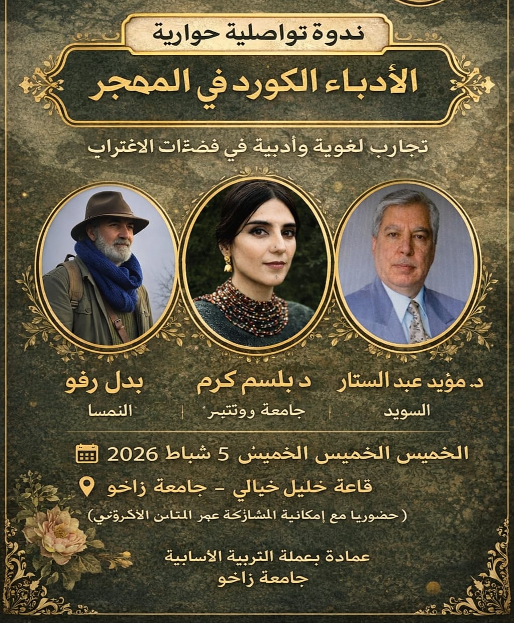 بدعوة رسمية من جامعة زاخو في إقليم كوردستان العراق، وبالتنسيق بين القسمين العربي والكردي، احتضنت الجامعة ندوة ثقافية دولية خُصِّصت لتسليط الضوء على تجربة الأدباء الكورد في بلدان المهجر، ودورهم في الحفاظ على حيوية الثقافة الكوردية وتعزيز حضورها في الفضاءين الداخلي والخارجي.
