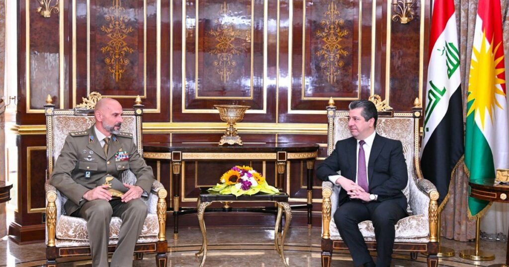 وجاء ذلك خلال استقبال رئيس حكومة الإقليم مسرور بارزاني، اليوم، قائد القوات الإيطالية في العراق وإقليم كردستان الكولونيل دانييلي بيزاني، وذلك بمناسبة انتهاء مهام عمله.