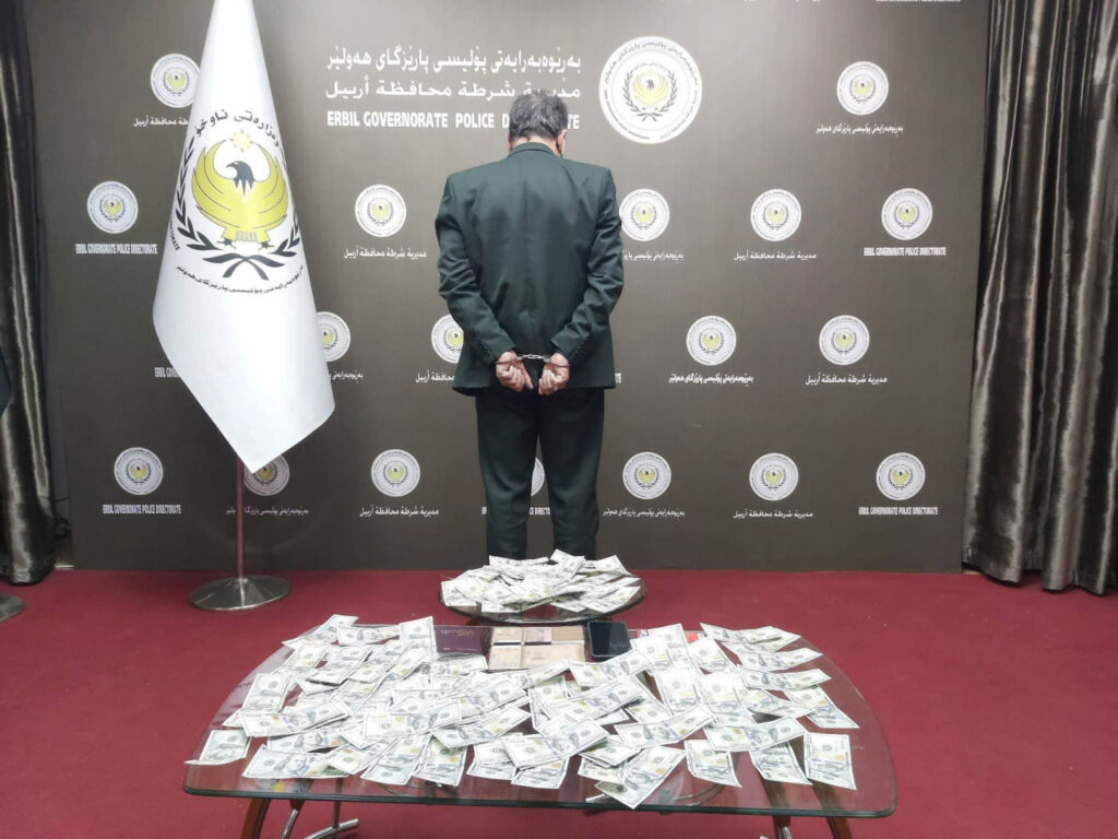 صور .. شرطة أربيل تطيح بإيراني يسكن في تركيا بحوزته 12 ألف دولار مزيفة