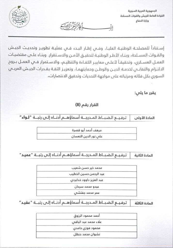 تولي مقاتلين أجانب مناصب قيادية في الجيش السوري الجديد: حالة عبد العزيز داود هودافيردي من تركستان الشرقية نموذجًا (2025/12/21)