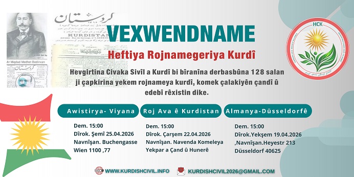 Bi helkefta Roja Rojnamegeriya Kurdî ya ku her sal di 22’ê Nîsanê de tê bîranîn, Hevgirtina Civaka Sivîl a Kurdî ragihand ku Hefteya Rojnamegeriya Kurdî dest pê dike, ji bo bîranîna derbasbûna 128 salan ji çapkirina yekem rojnameya kurdî “Kurdistan”.