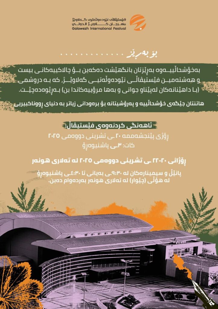 السليمانية تحتضن الدورة 28 لمهرجان گلاويژ الدولي الثقافي